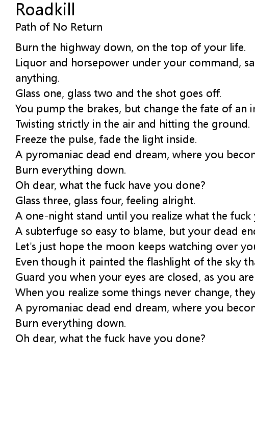 Burn the highway down, on the top of your life. |