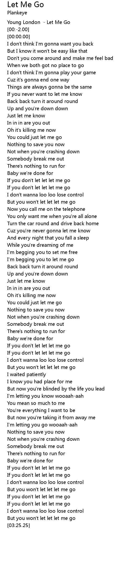 | [02:58.35] | If you don't let let let me go |