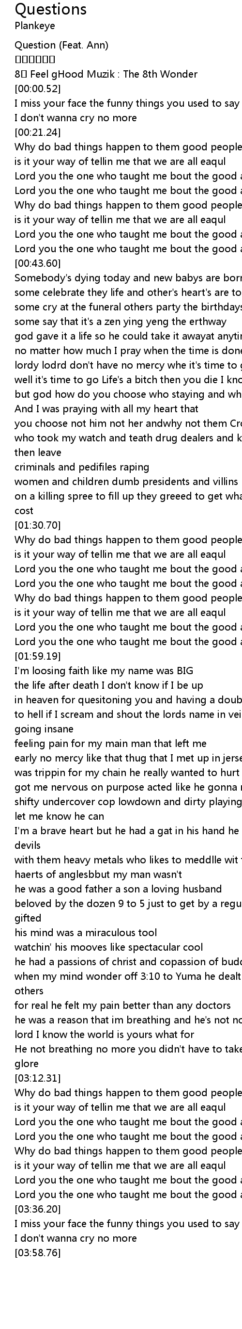 | [00:38.60] | Lord you the one who taught me bout the good and evil |