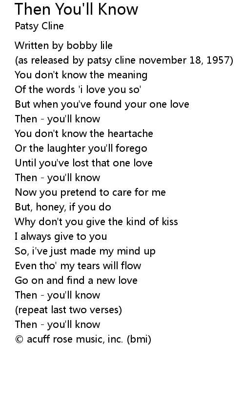 | Then - you'll know | |