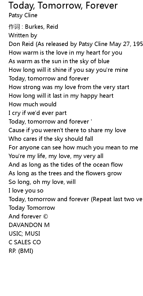 | Today, tomorrow and forever | |