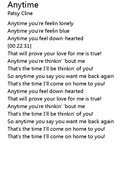 Anytime you're feelin lonely |