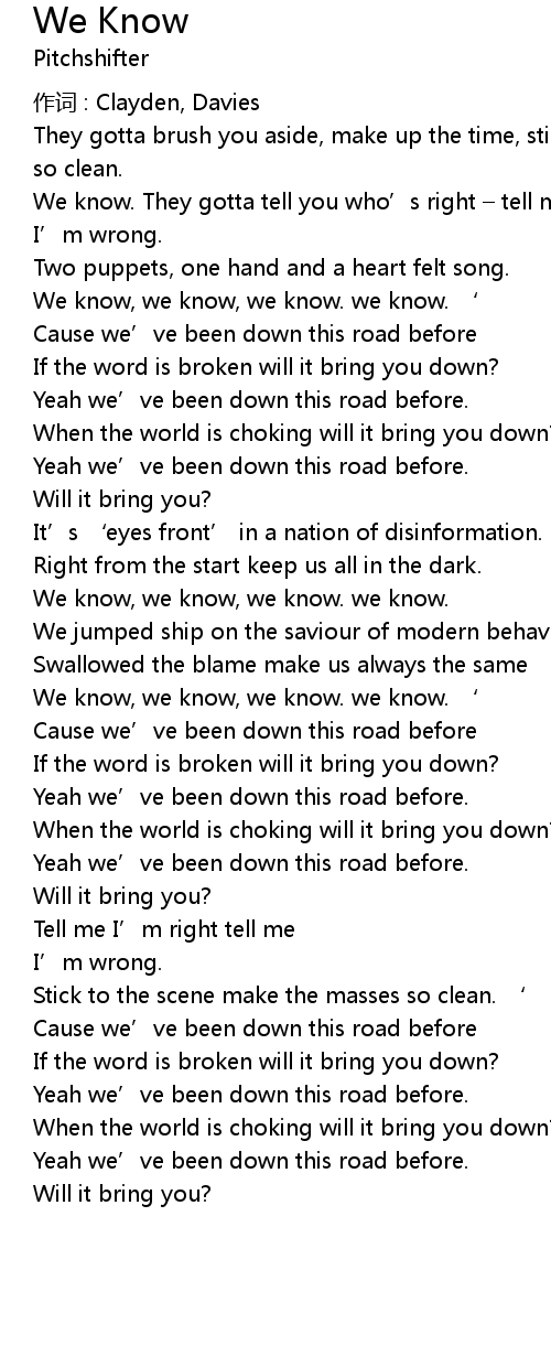 | We know, we know, we know. we know. ' | |