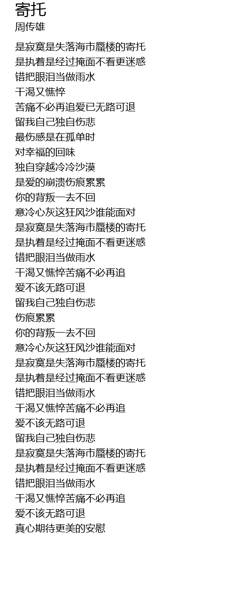 | [03:34.490] | 是寂寞是失落海市蜃楼的寄托 |