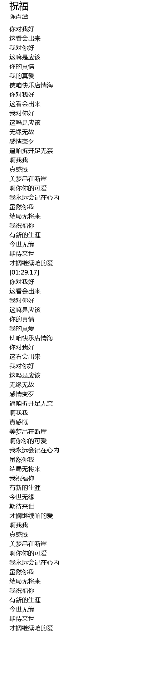 | [01:17.74] | 我祝福你 |