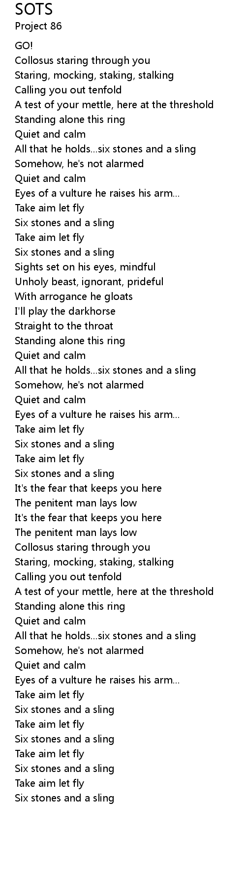 All that he holds...six stones and a sling |