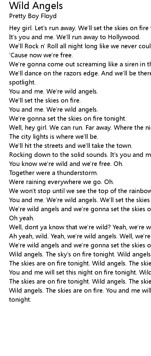 The skies are on fire tonight. Wild angels. The skies are on fire tonight. |