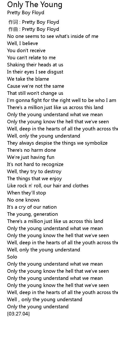 | [01:54.25] | Only the young understand what we mean |
