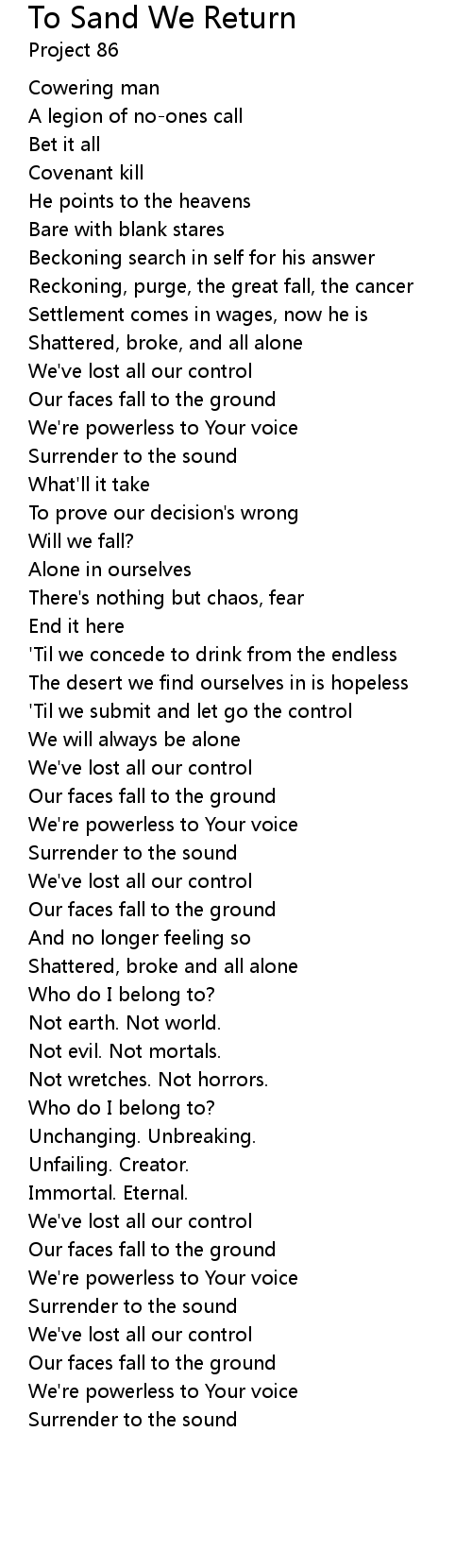 'Til we submit and let go the control |