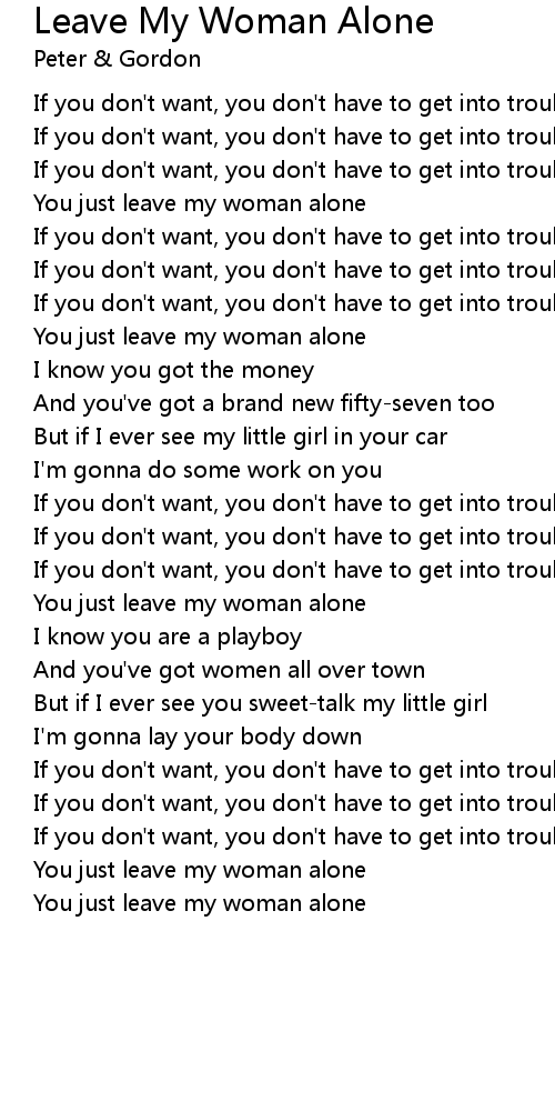 You just leave my woman alone |