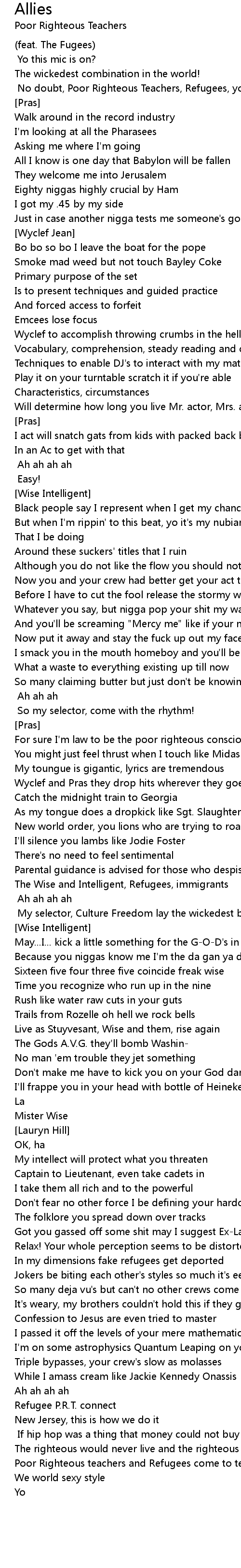 [WI:] No doubt, Poor Righteous Teachers, Refugees, you know what I'm saying?