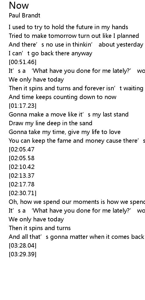 | [03:01.37][02:05.58] | In this ' What have you done for me lately?' world |