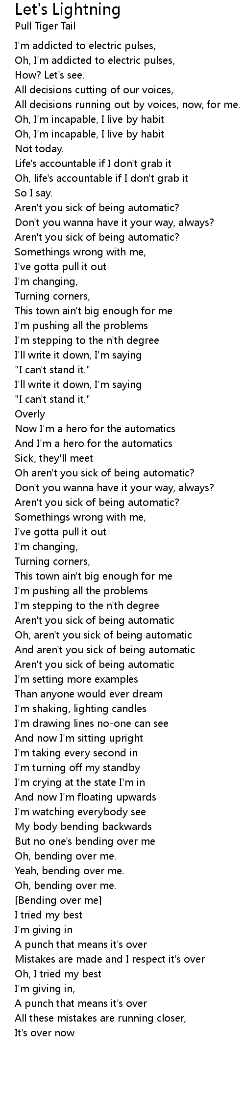 Oh, aren't you sick of being automatic |