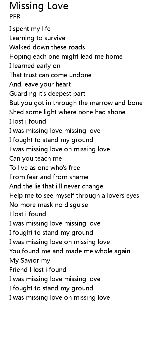 | I was missing love oh missing love | |