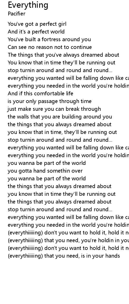 | everything you needed in the world you're holdin, holdin in your hands | |