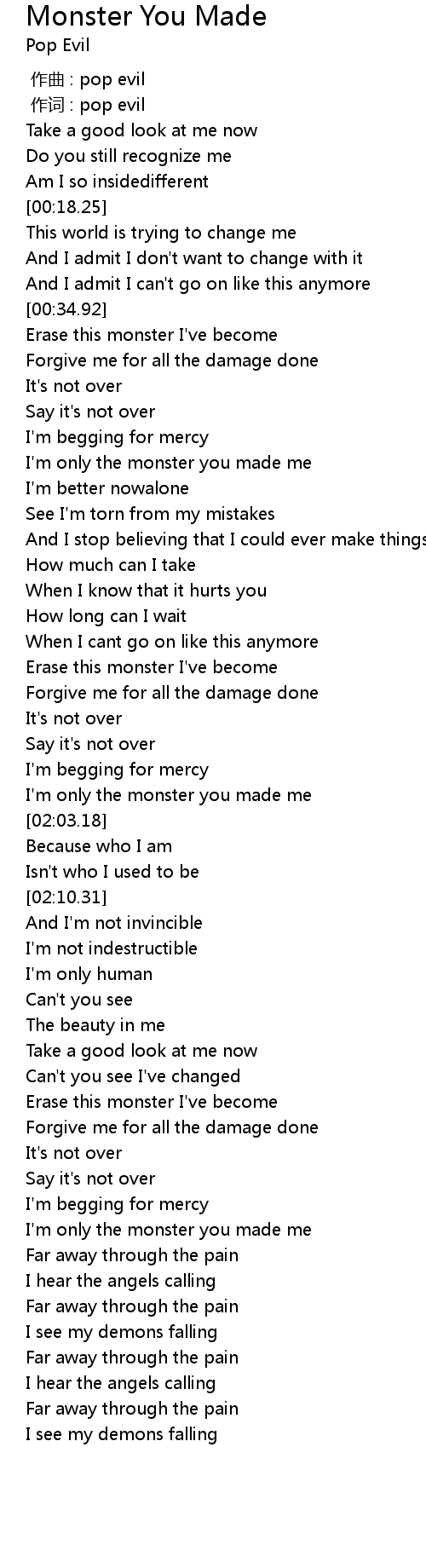 | [02:57.31] | I'm only the monster you made me |