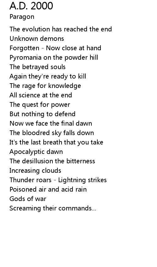 | 歌曲 | A.D. 2000 |