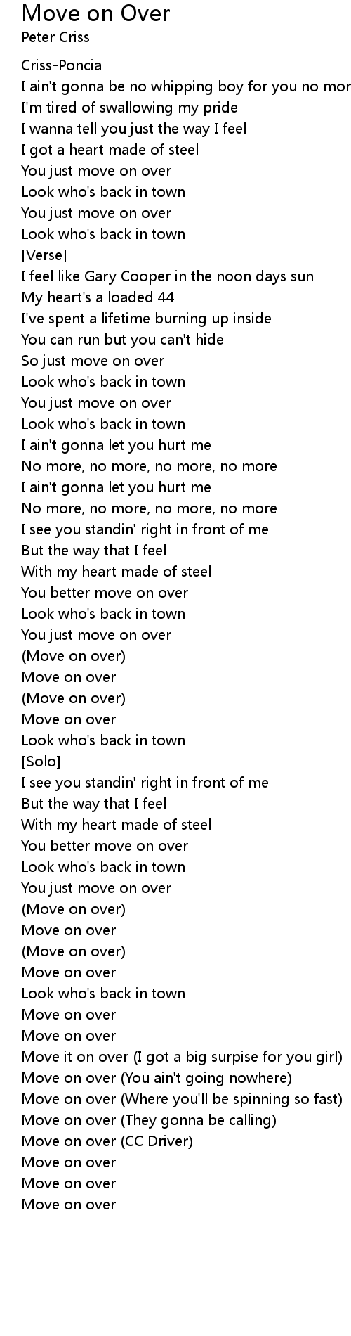 Move on Over 歌词