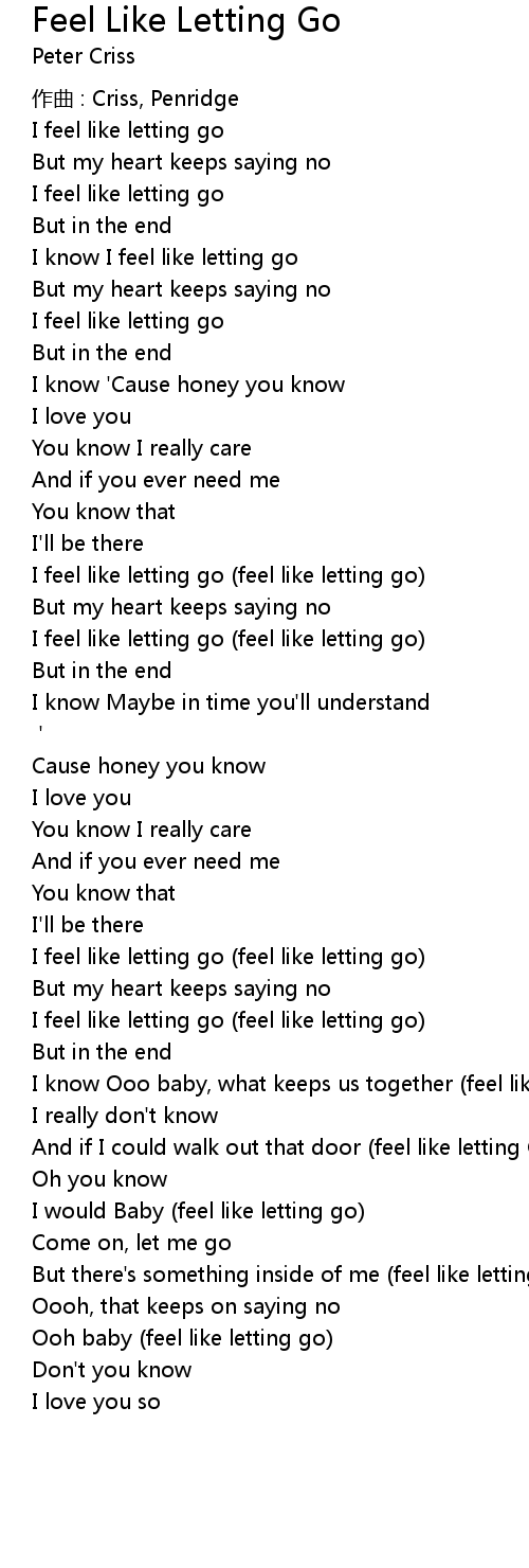 | I know Ooo baby, what keeps us together feel like letting go | |