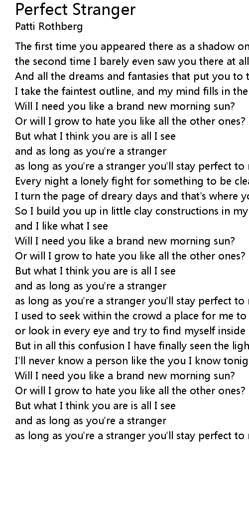 as long as you're a stranger you'll stay perfect to me |
