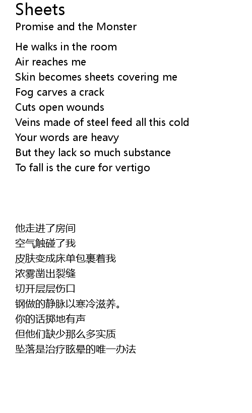 | [00:18.591] | Skin becomes sheets covering me |