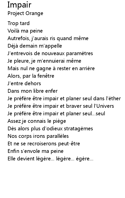 | Je pré fè re tre impair et braver seul l' Univers | |