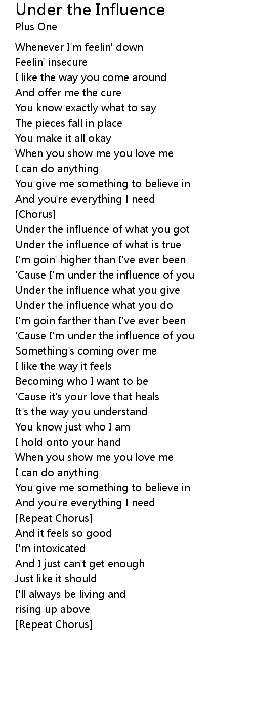 | 'Cause I'm under the influence of you | |