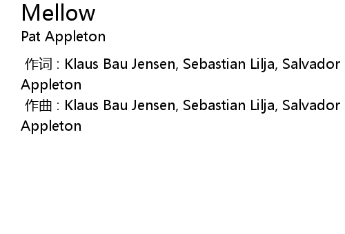 | [00:00.000] | 作曲 : Klaus Bau Jensen, Sebastian Lilja, Salvador Embalo and Pat Appleton |