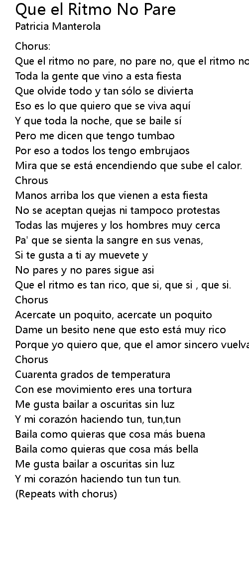 | Que el ritmo no pare, no pare no, que el ritmo no pare. | |