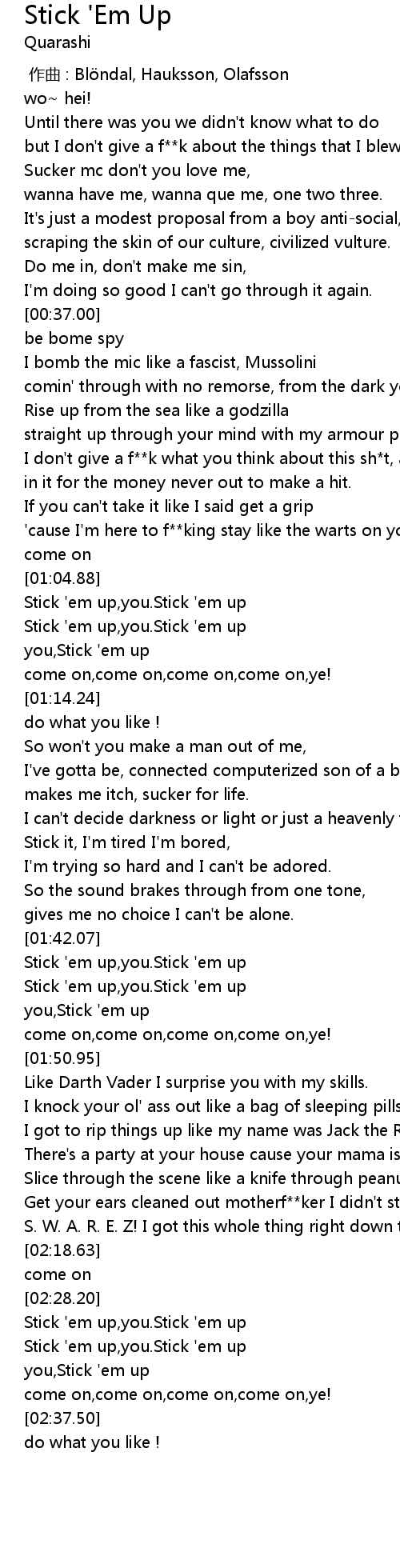 | [02:34.00] | you, Stick ' em up |