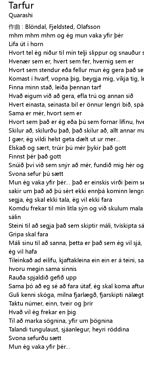 | mhm mhm mhm og ég mun vaka yfir þér | |