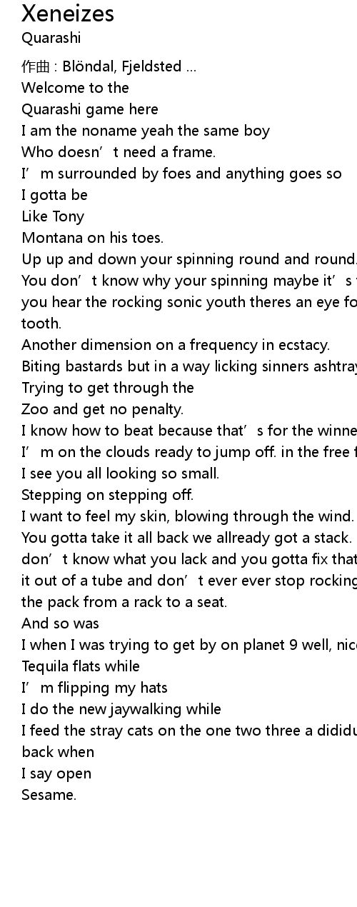 | You don' t know why your spinning maybe it' s the syntha sound, but this is me you hear the rocking sonic youth theres an eye for an eye and a tooth for a tooth. | |