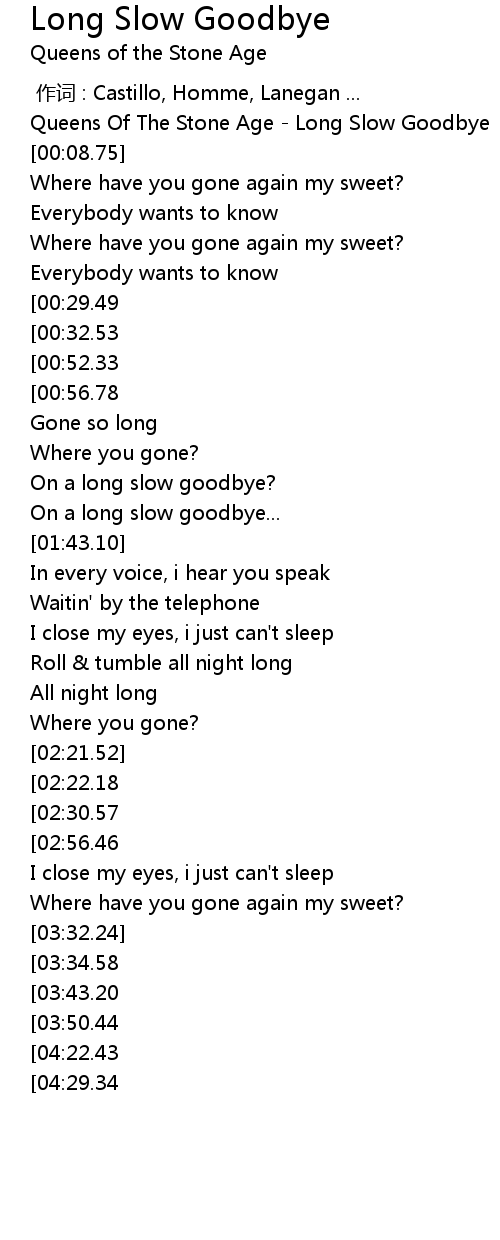 | [00:00.00] | Queens Of The Stone Age Long Slow Goodbye |