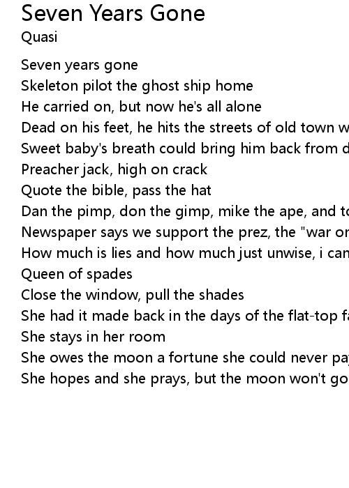 | Seven years gone | |