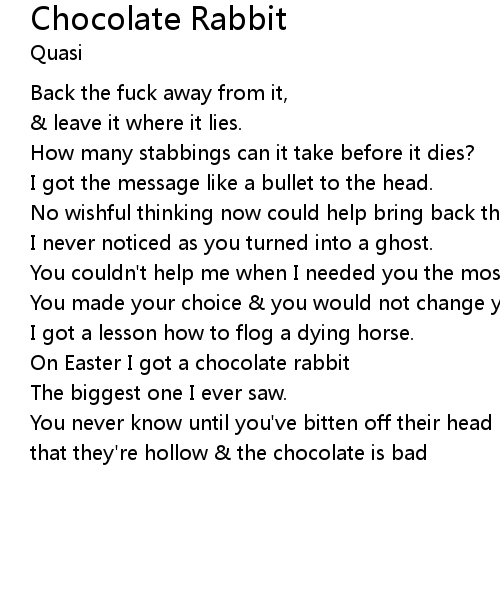 On Easter I got a chocolate rabbit |