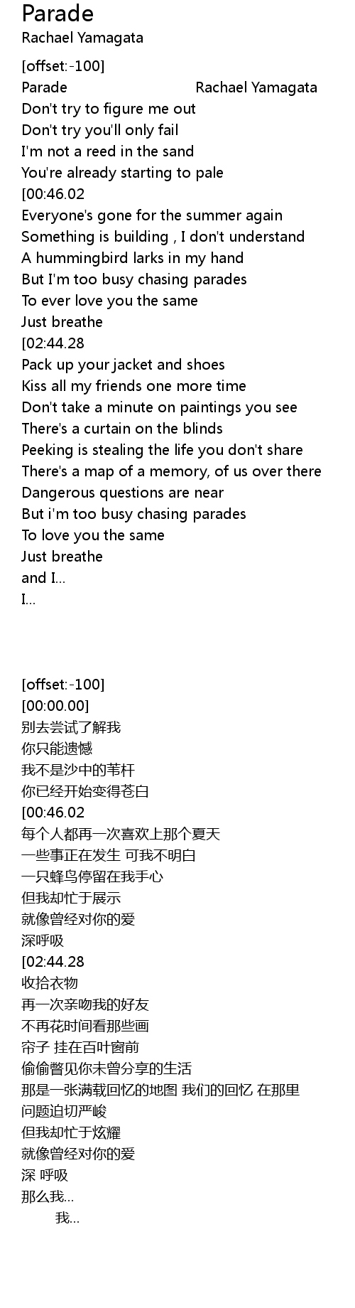 | [00:31.22][00:46.02][01:46.35][02:05.07][02:53.32] |