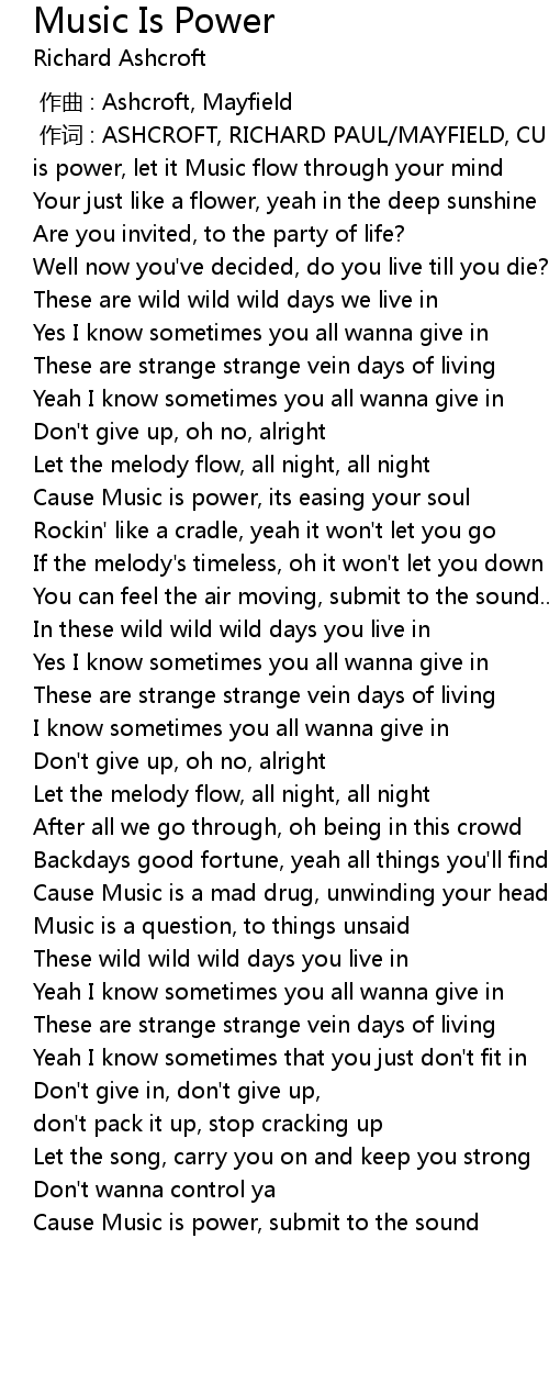 | [01:18.06] | Cause Music is power, its easing your soul |