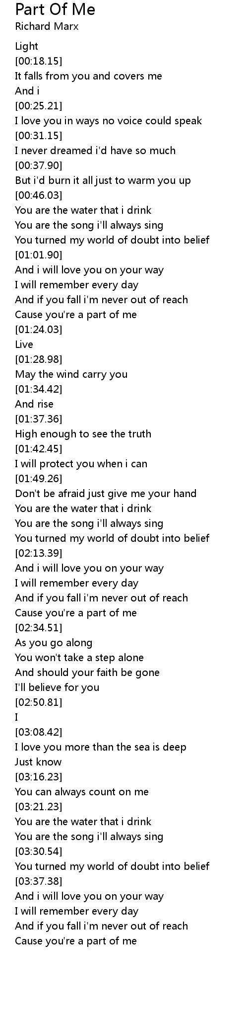 Cause you're a part of me |
