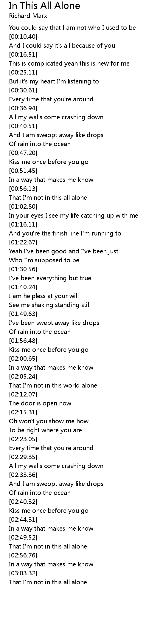 That I'm not in this all alone |