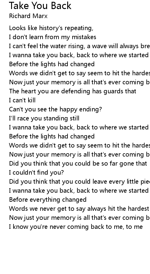 I wanna take you back, back to where we started |