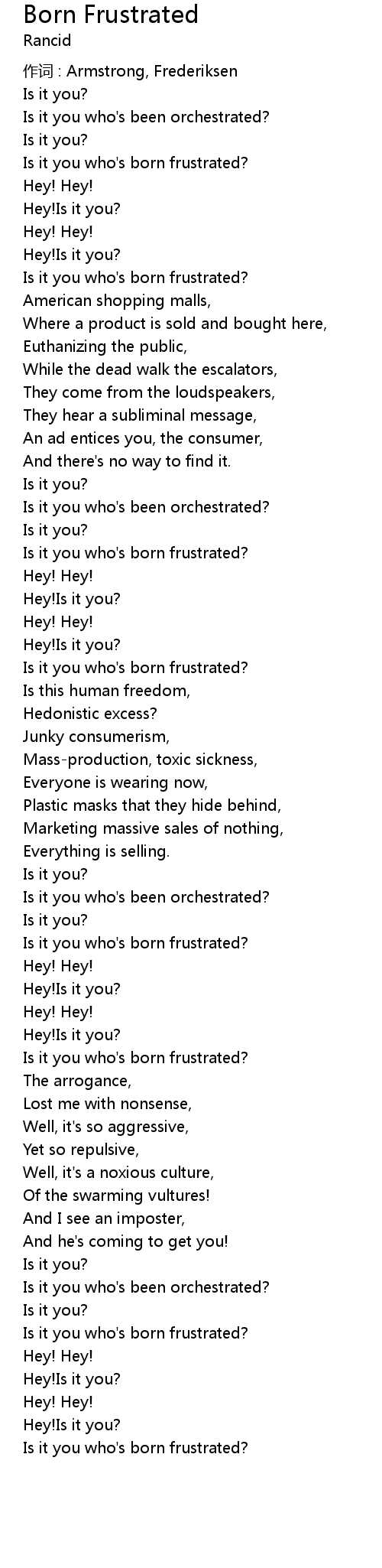 | Is it you who's born frustrated? | |