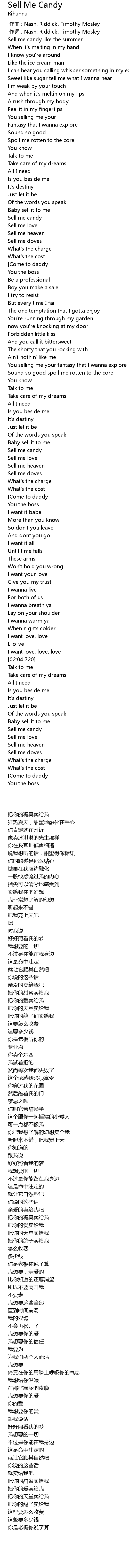 | [00:01.410] | 把你的糖果卖给我 |