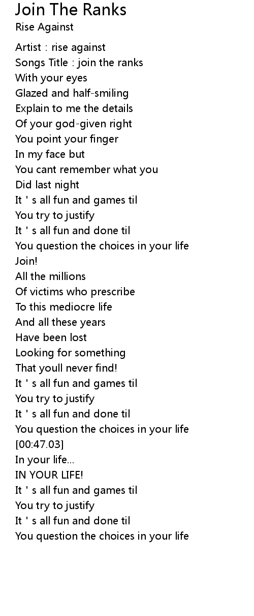 | [00:01.91] | Songs Title:join the ranks |