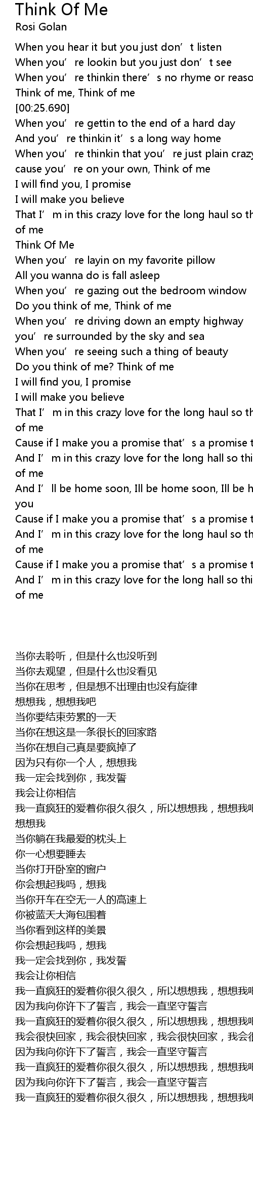 | [00:54.930] | That I' m in this crazy love for the long haul so think of me, Think of me |