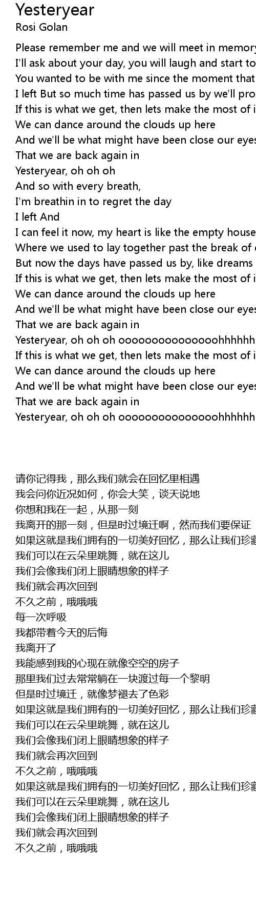 Yesteryear, oh oh oh ooooooooooooooohhhhhhhhhhhhhhhhhhhhhhhh |