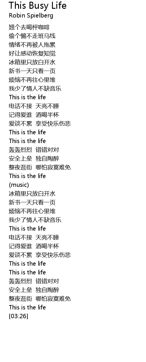| 歌曲 | This Busy Life |