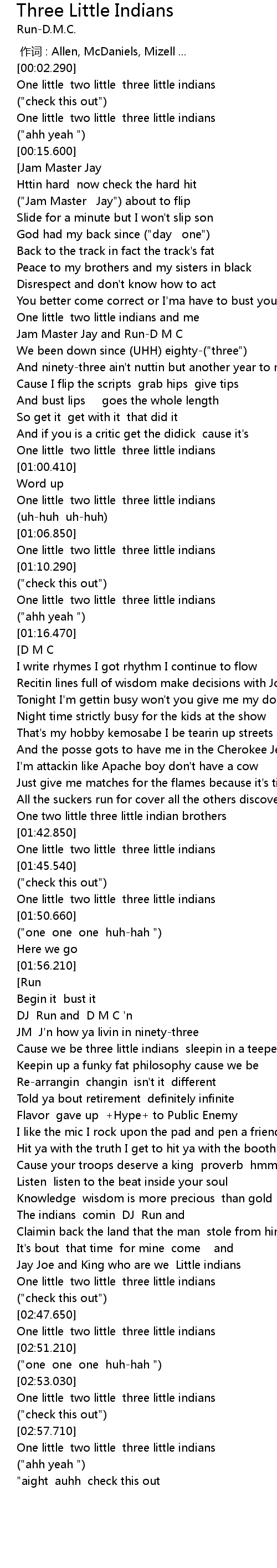 | [02:33.840] | The indians comin DJ Run and |