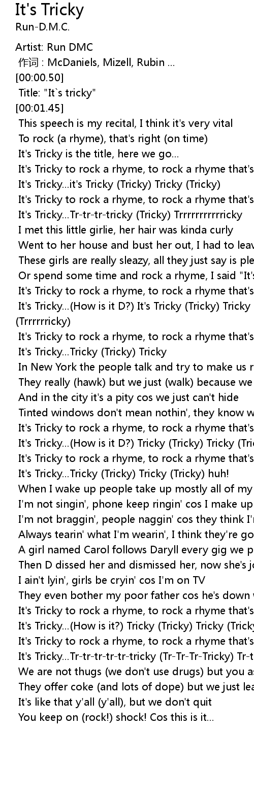 | [00:50.89] | It's Tricky...Tricky (Tricky) Tricky |