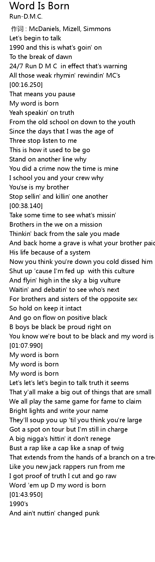 | [01:39.690] | Word ' em up D my word is born |