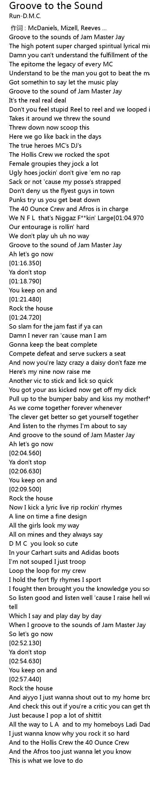 | [01:11.850] | Groove to the sound of Jam Master Jay |